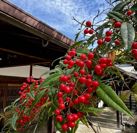 境内の赤い実をつけた南天の写真。本日の天気良好を表した写真でもあります。