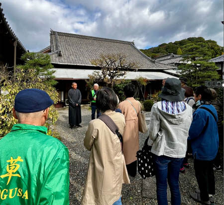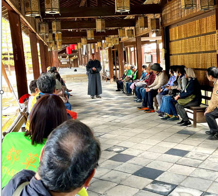 美化活動後、回廊、大雄宝殿内、法堂前で辻岡化主から、多くの興趣がつきないお話をしていただきました。