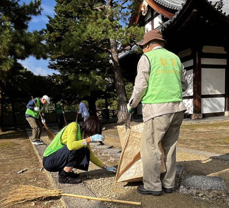本日は「山門を 出れば日本ぞ 茶摘み唄」の萬福寺で美化活動を行いました。大檀越となる第4代将軍徳川家綱から下賜された広大な境内に、国宝の仏堂が建ち並ぶ禅林の庭を掃除する栄誉にあずかりました。