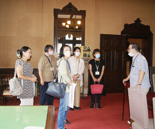 熊谷副理事長の案内で旧知事室を見学する参加者