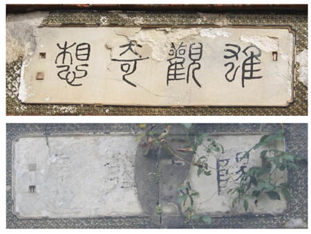ねじりまんぽの扁額、上は西側「雄観奇想」、下は東側「陽気発處」