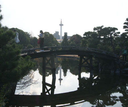 池に京都タワーがくっきり