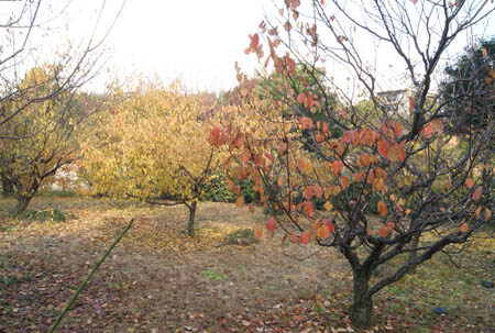 庭園に入るとすぐに梅園が