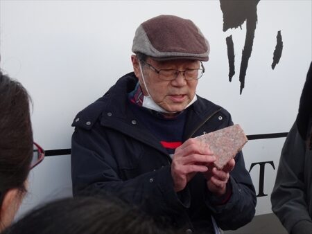 持参の石で解説する高木会員