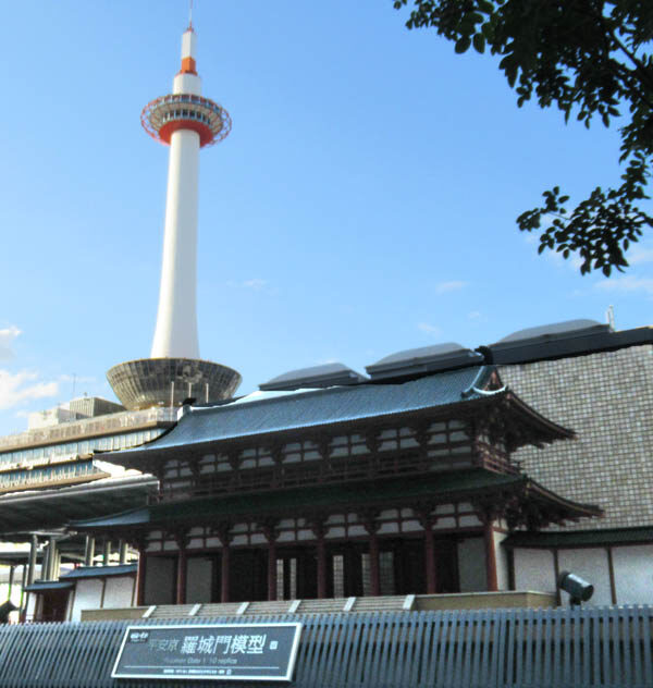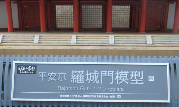 10 月15日、JR 京都駅北口広場にある羅城門復元模型(1/10)の柵に「平安京 羅城門模型」と書かれた看板が設置されました。