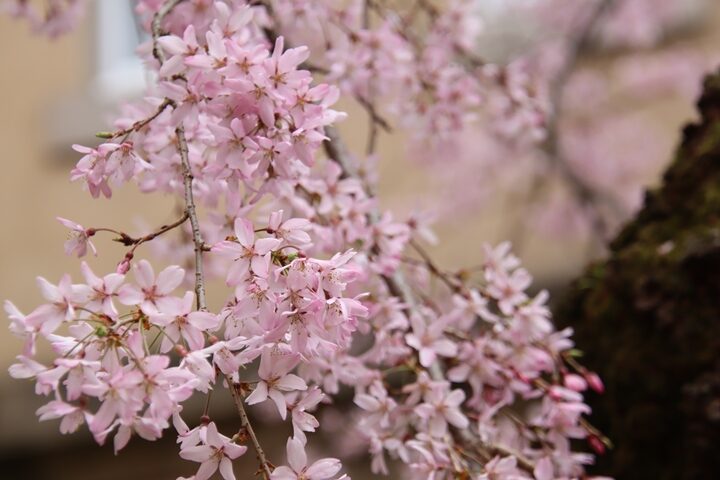 京都府庁旧本館中庭のしだれ桜開花状況(26.03.31) 2026.04.01 京都府庁旧本館中庭のしだれ桜開花状況(26.03.31) 【祇園しだれ桜】 【紅一重しだれ桜】 【容保桜】 【大島桜】 【紅八重しだれ桜】 【はるか桜】 (写真 小松 香織)