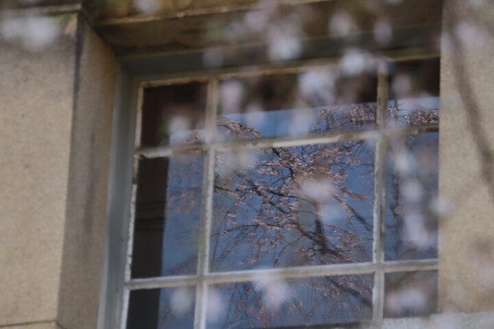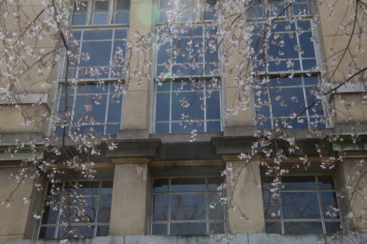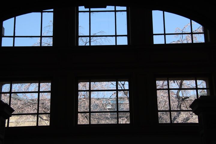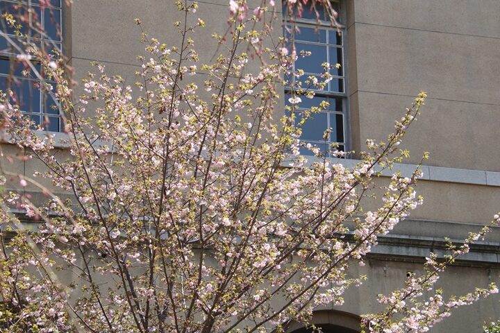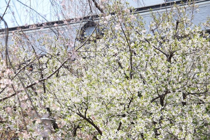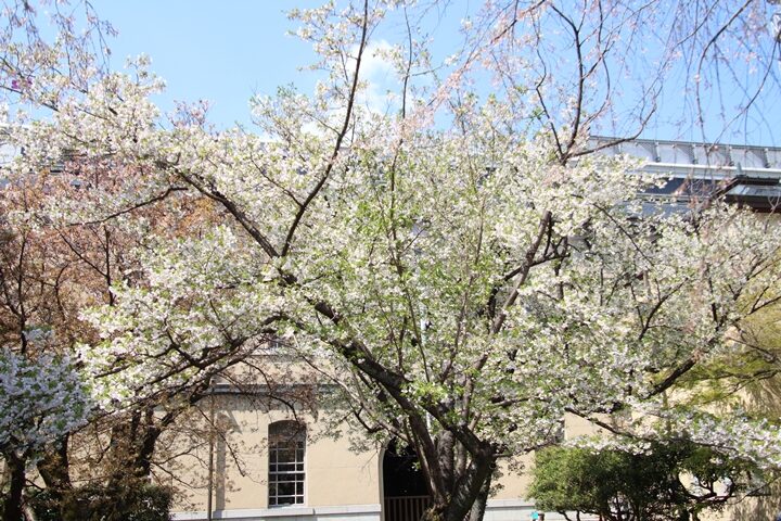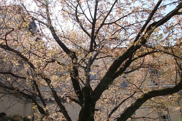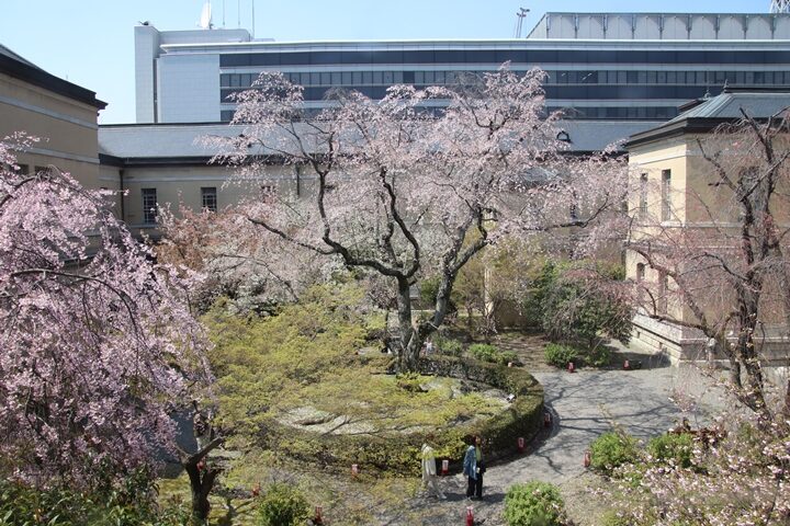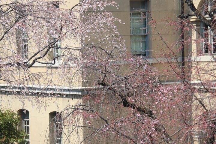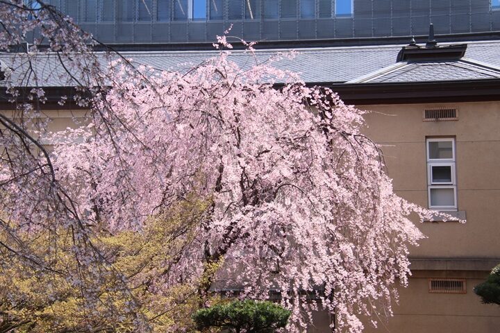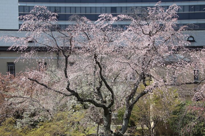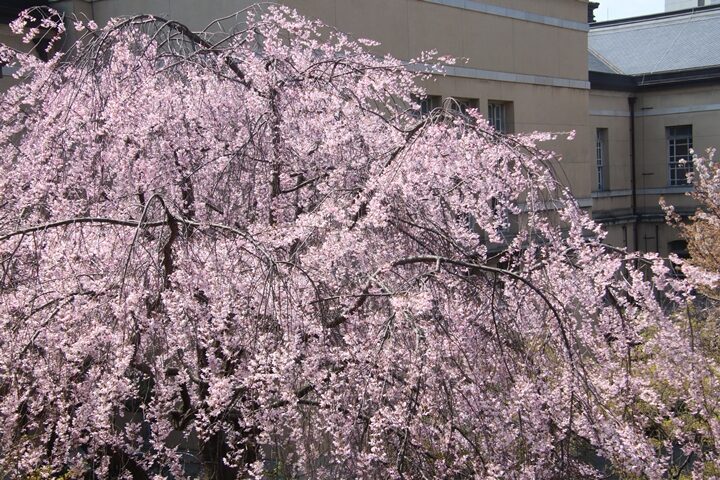 京都府庁旧本館中庭のしだれ桜開花状況(26.04.02)
